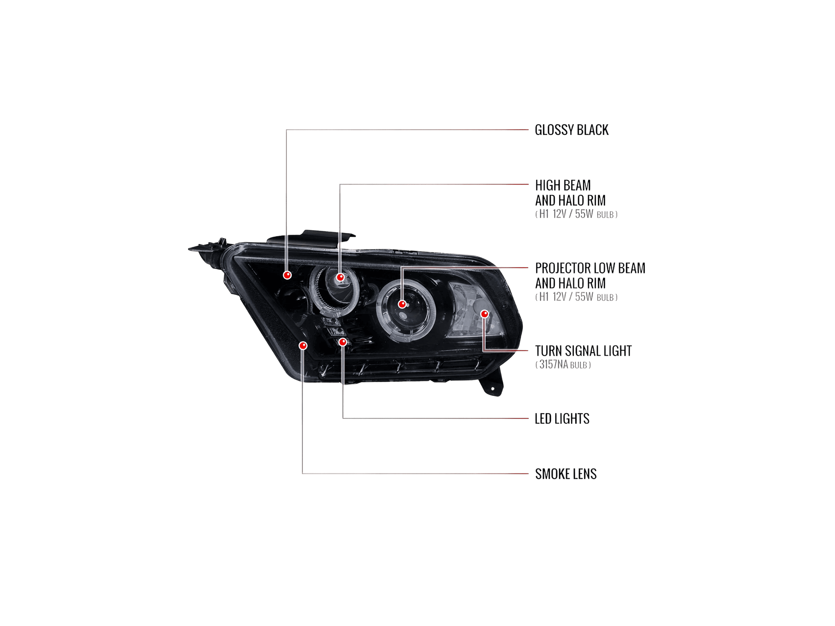 Glossy Black Housing Smoke Lens Projector Headlights