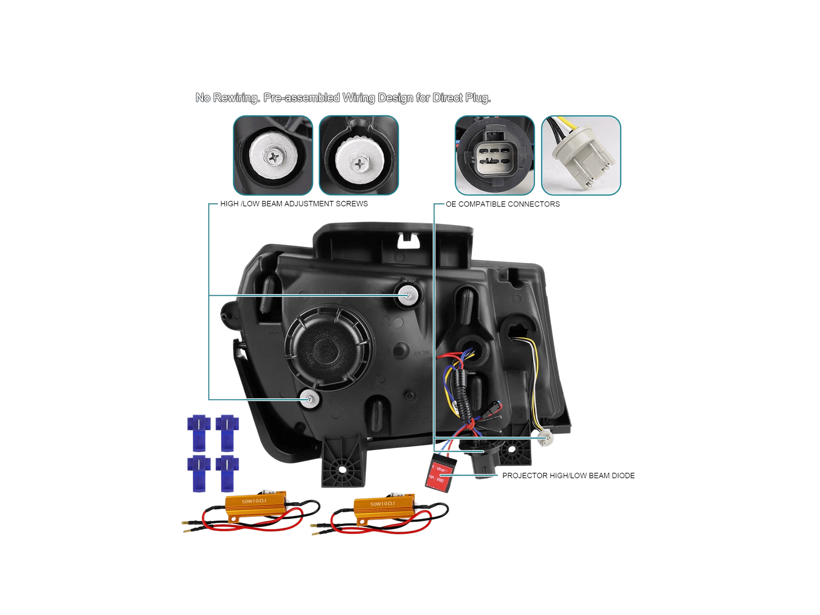 *Incluye resistencias LED de 50W y 10 Ω y conectores de cable.